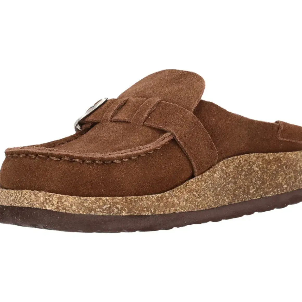 Cruz Emillian Leather korksandaler til damer forener det bedste fra to verdener: komforten fra en slip-on sandal og det sofistikerede udtryk fra loafers eller mokkasiner. Den lukkede snude giver ekstra beskyttelse og gør sandalen ideel til både indendørs og udendørs brug. Overdelen i blødt ruskind og den ergonomiske fodseng i mikrofiber sikrer høj komfort hele dagen, mens kork- og EVA-mellemsålen giver let dæmpning og støtte. Et diskret spænde over vristen fuldender det moderne, afslappede look.