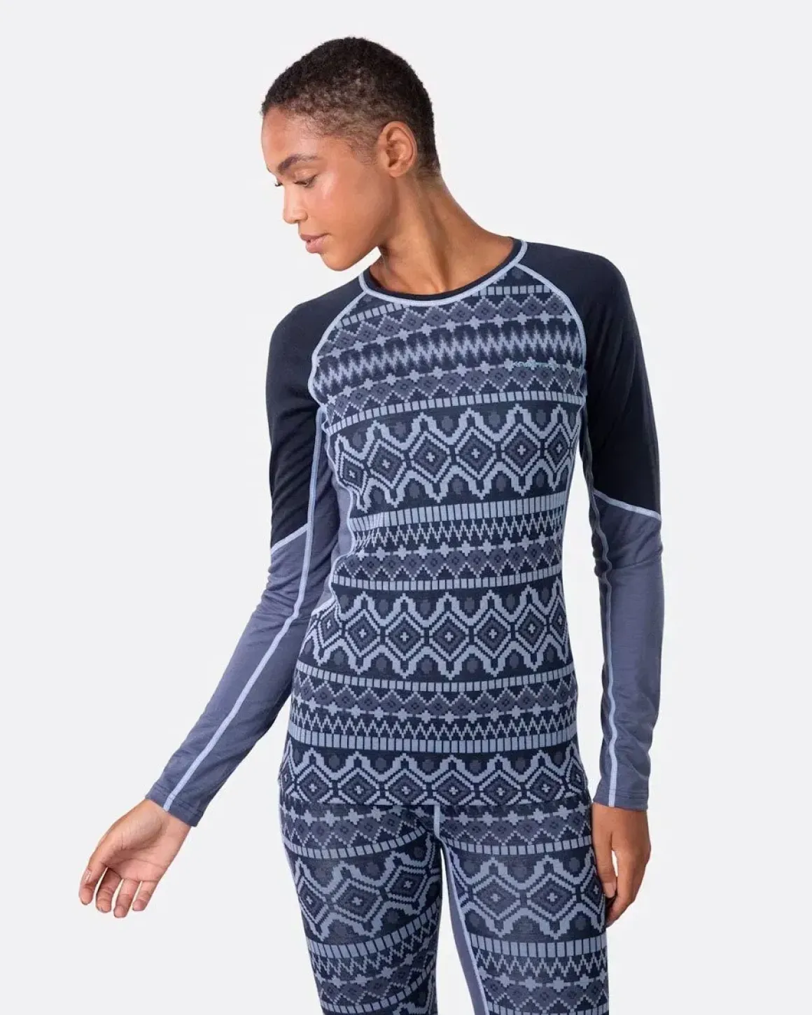 Kari Traa Malia er et slankt skiundertøj sæt lavet af en Merinould og Tencel blanding. En af de varmeste, hurtigtørrende og mest komfortable baselayers hos Kari Traa. Malia har en jacquardstrikket front og kontrasterende paneler, der strategisk leder fugt. Høstet fra eukalyptustræer er Tencel fornyelig og bæredygtigt.