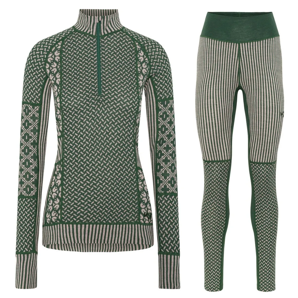 Kari Traa Smekker Skiundertøjssæt til damer er et luksuriøst baselayer i 100% merinould, bestående af langærmet skiundertrøje og high waist skiunderbukser.