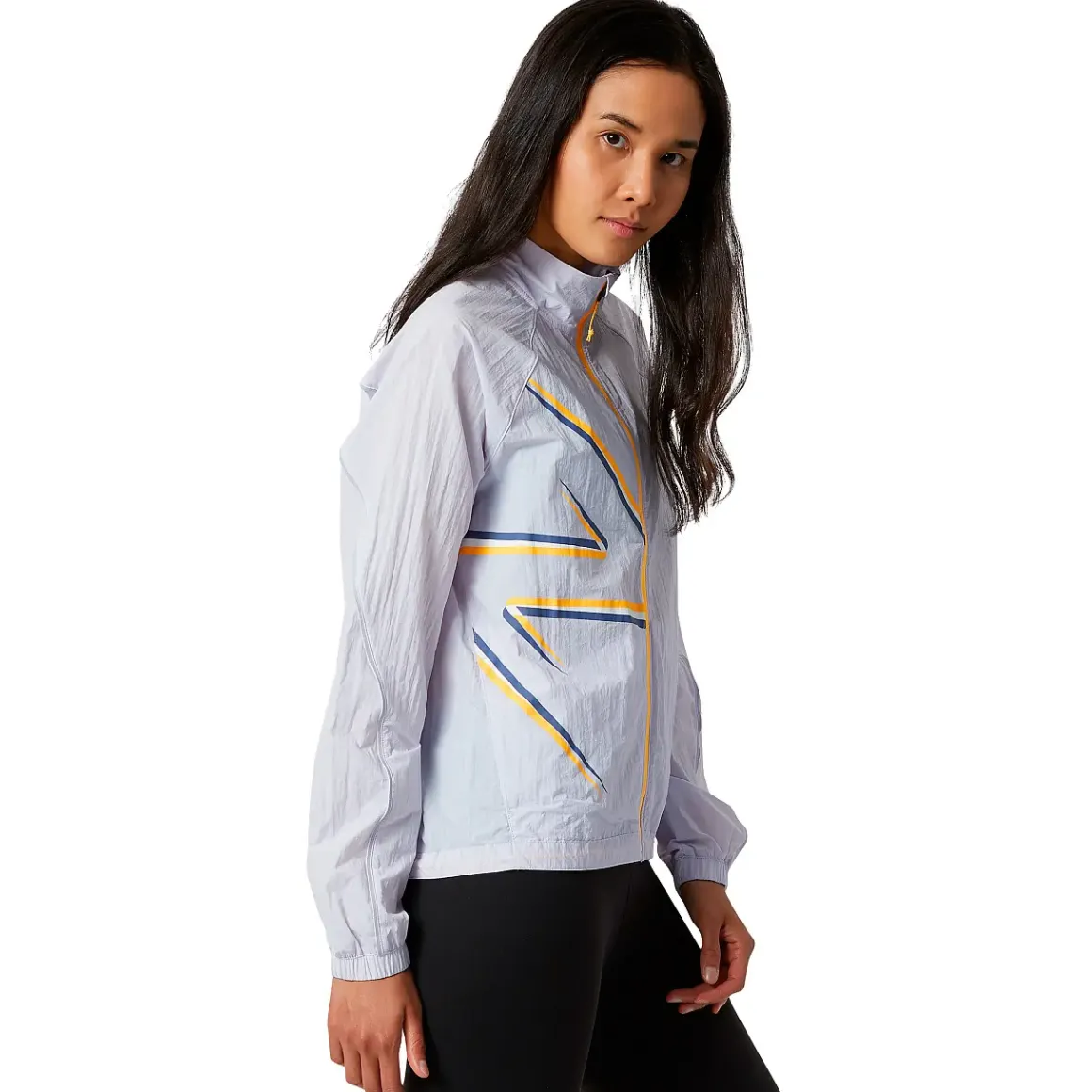 Smart feminin løbejakke. Den vævede nylonskal har vind- og vandafvisende beskyttelse i uforudsigeligt vejr, plus denne løbejakke til kvinder kan pakkes sammen i en lomme