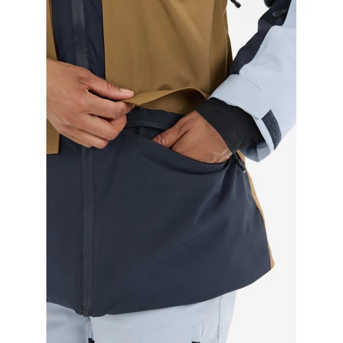 Med tapede sømme og vandtætte lynlåse holdes sne og fugt effektivt ude, mens ventilationslynlåse under ærmerne giver mulighed for at regulere temperaturen, når aktivitetsniveauet stiger. Den faste hætte, aftagelige snefang og justeringsmuligheder ved ærmer og kant sikrer en behagelig og tilpasset pasform. Den lette polstring på 120 g/m² giver god varme uden at gøre jakken tung eller klodset.