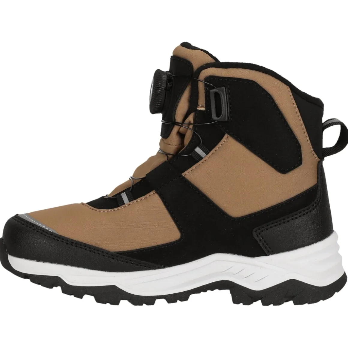 Overdelen er lavet i slidstærkt softshell-materiale, der giver både fleksibilitet og en let fornemmelse. Det innovative Q-Lock lukkesystem gør det nemt for børnene selv at tage støvlerne af og på – tryk for at aktivere, drej for at stramme og træk op for at løsne. Reflekterende detaljer giver ekstra synlighed i mørket og bidrager til større sikkerhed på de korte vinterdage.