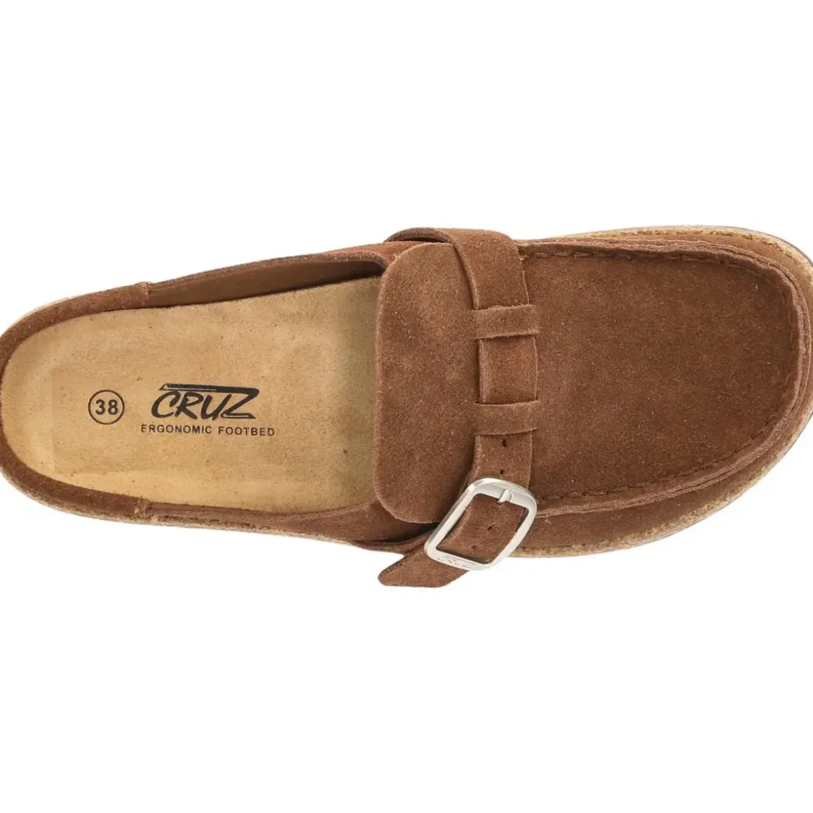 Cruz Emillian Leather korksandaler til damer forener det bedste fra to verdener: komforten fra en slip-on sandal og det sofistikerede udtryk fra loafers eller mokkasiner. Den lukkede snude giver ekstra beskyttelse og gør sandalen ideel til både indendørs og udendørs brug. Overdelen i blødt ruskind og den ergonomiske fodseng i mikrofiber sikrer høj komfort hele dagen, mens kork- og EVA-mellemsålen giver let dæmpning og støtte. Et diskret spænde over vristen fuldender det moderne, afslappede look.