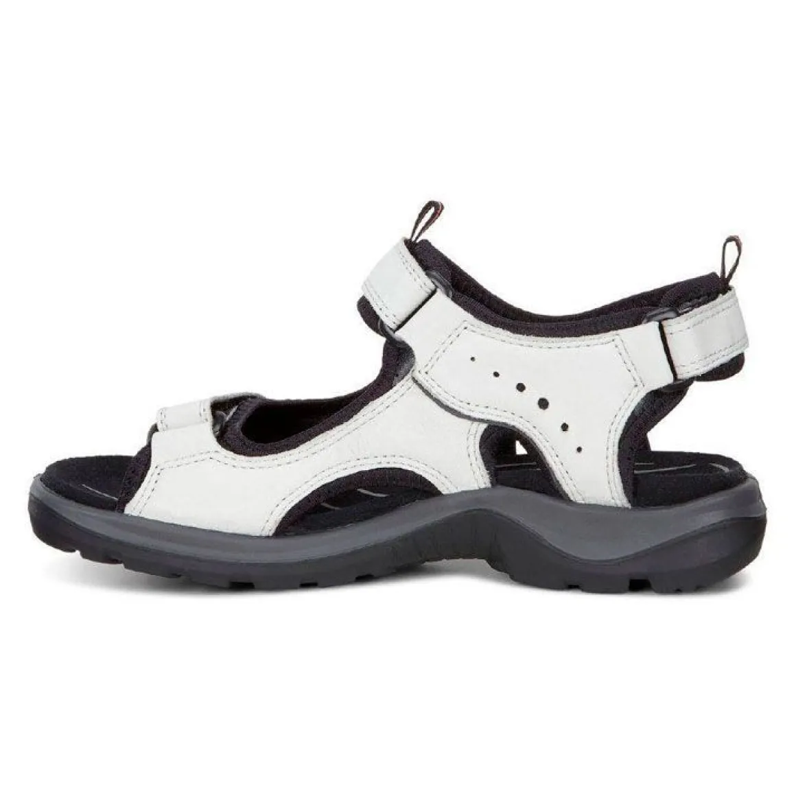 Skoen er fremstillet i førsteklasses ECCO-læder og har et blødt neoprenfor, som sammen med justerbare remme sikrer en individuel og behagelig pasform. Den formstøbte EVA-fodseng med mikrofiberbetræk giver fremragende stødabsorbering og støtte hele dagen.