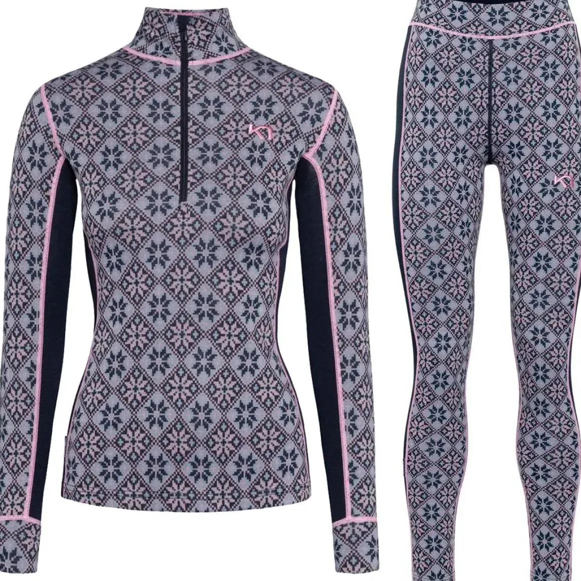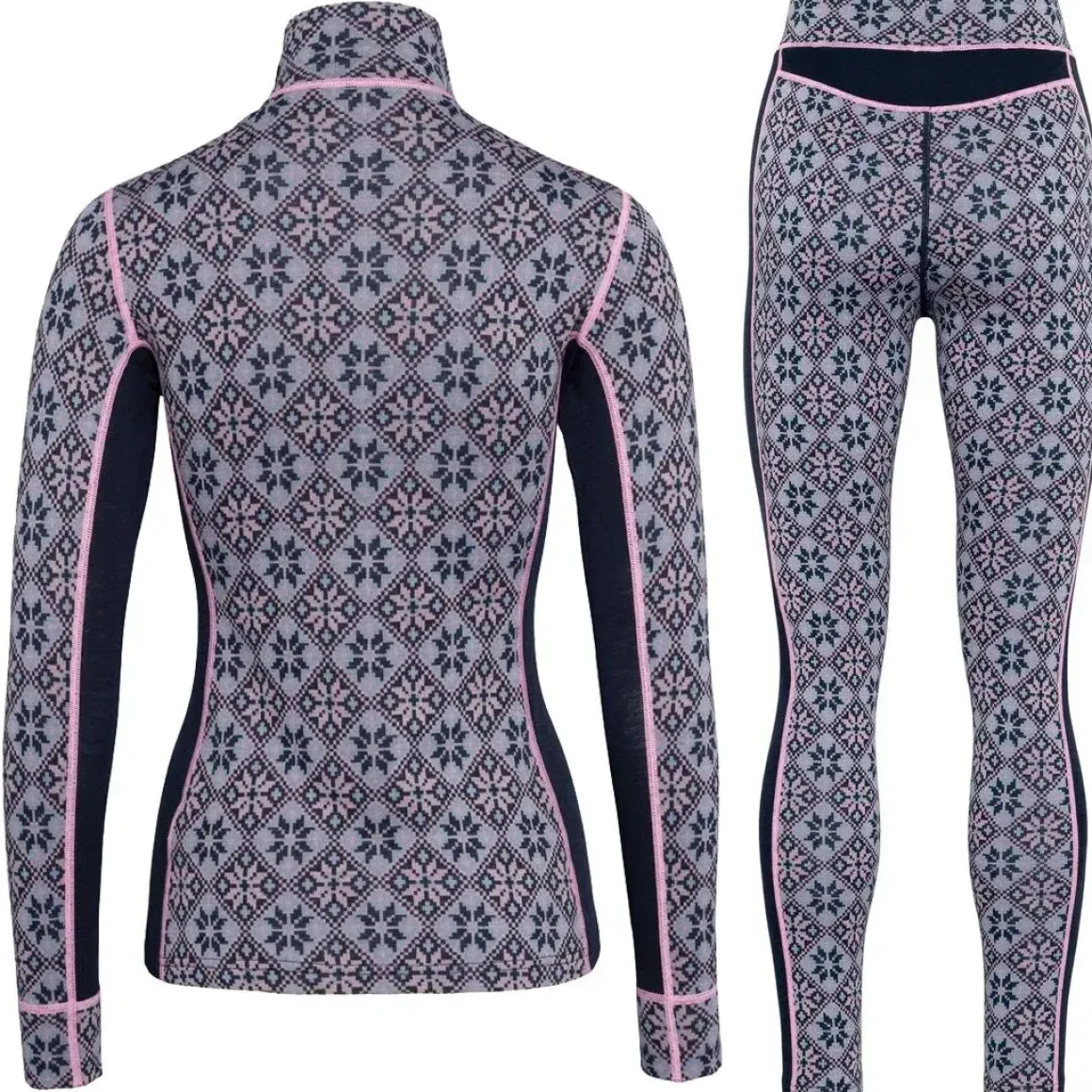 – Komplet skiundertøjssæt: Half zip trøje + bukser i klassisk rosemønster