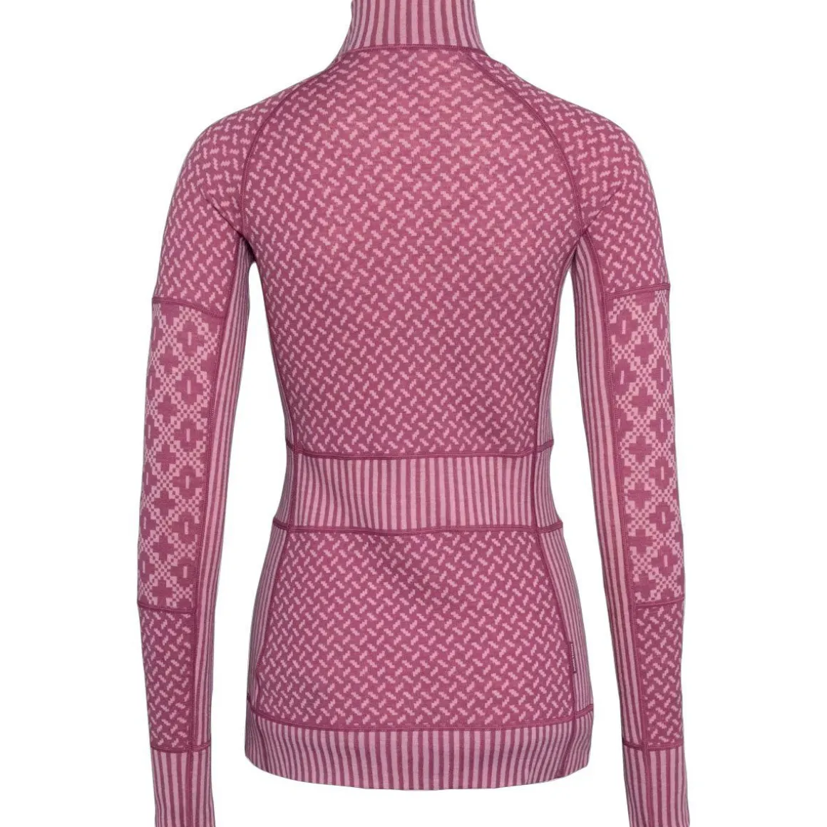 Det lette og åndbare materiale isolerer effektivt – selv i fugtig tilstand – og er naturligt lugtresistent, så du holder dig varm, tør og komfortabel hele dagen. Jacquardstrikkede paneler i forskellige mønstre giver et flatterende look, mens underarms-paneler og halv lynlås sikrer fuld bevægelsesfrihed og mulighed for ventilation.