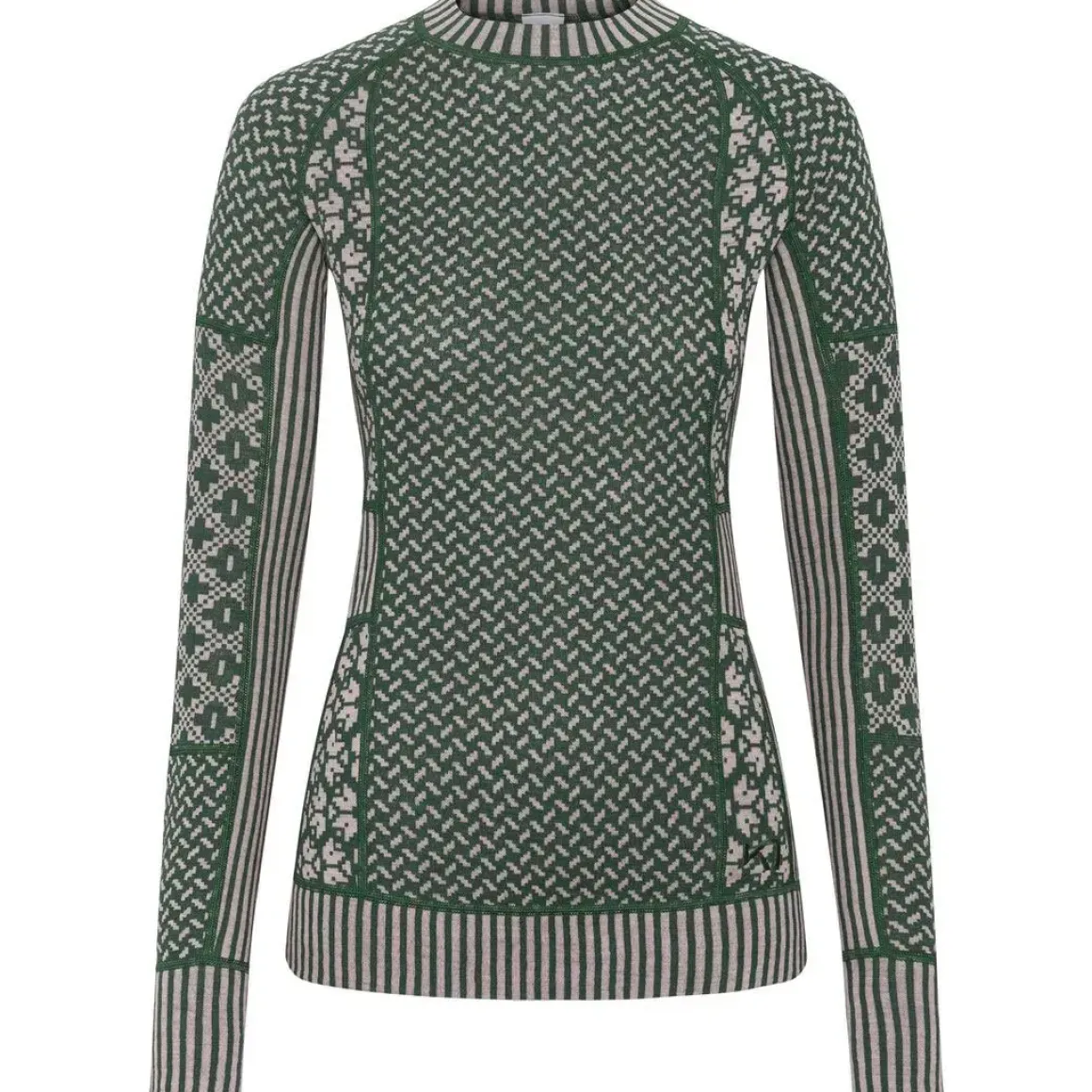 Det nordisk-inspirerede jacquardmønster giver et feminint og moderne look, mens slim fit pasform, underarmspaneler og brede linning sikrer bevægelsesfrihed og høj komfort.
