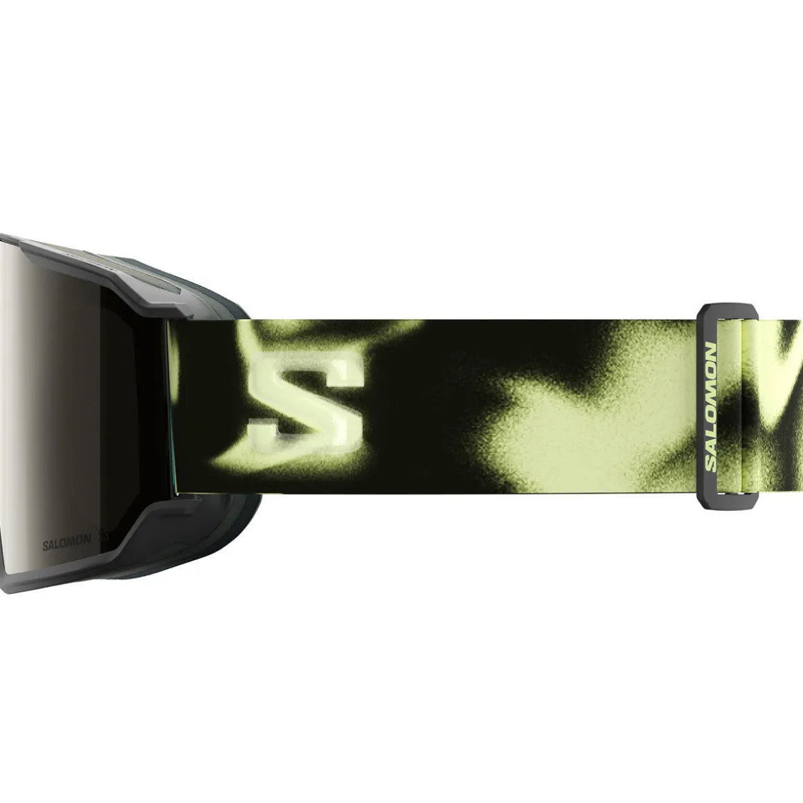 Skibrillerne har en silikonebelagt rem af genanvendte materialer, der sikrer stabilt greb på hjelmen, og er naturligvis kompatible med Salomon-hjelme for perfekt pasform og ventilation.