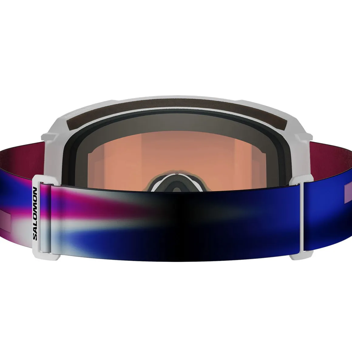 Skibrillerne har en silikonebelagt rem af genanvendte materialer, der sikrer stabilt greb på hjelmen, og er naturligvis kompatible med Salomon-hjelme for perfekt pasform og ventilation.