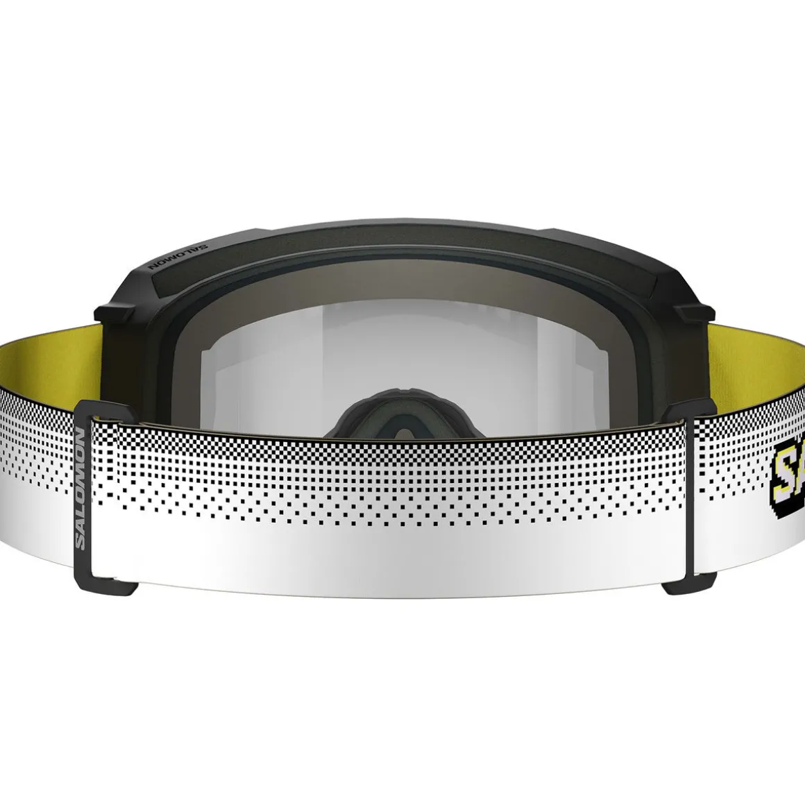 Skibrillerne har en silikonebelagt rem af genanvendte materialer, der sikrer stabilt greb på hjelmen, og er naturligvis kompatible med Salomon-hjelme for perfekt pasform og ventilation.