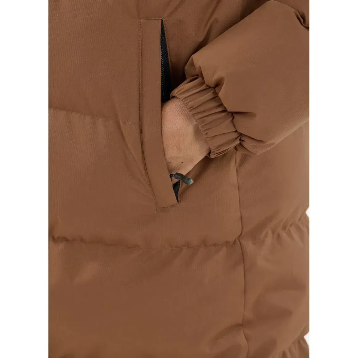 Den lange, polstrede konstruktion sikrer optimal varmeisolering, mens det vind- og vandafvisende ydermateriale beskytter mod vejret. Jakken har en justerbar hætte, lynlåslommer og en feminin pasform, der kombinerer funktionalitet med et moderne look. Med sit lette fyld og rummelige design er Abella-frakken ideel til både hverdagsbrug og udendørsaktiviteter, hvor komfort og varme er i fokus.