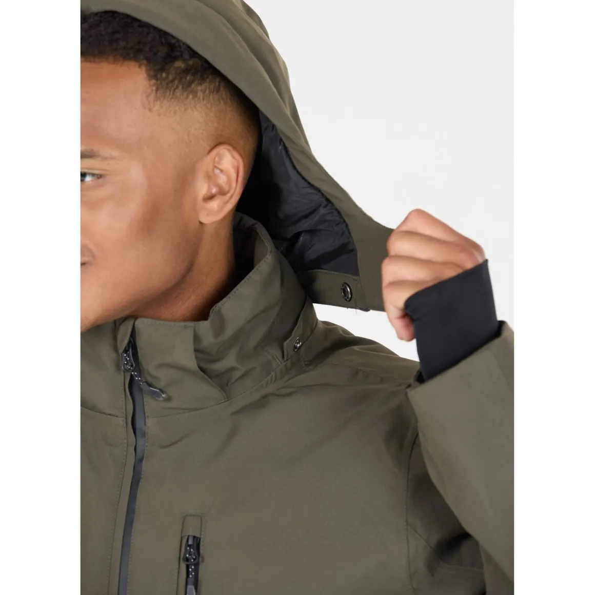 – Vandtæt lynlås og tapede syninger, så jakken holder helt tæt